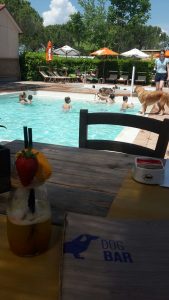 Er valt daar ook zoveel te zien! In één van de drie zwembaden mogen honden samen met hun baasjes zwemmen. Sommige honden kunnen niet wachten om met een zweefduik het water in te plonsen, anderen worden door hun baasje tevergeefs het water in gelokt. Er is een badmeester en op sommige tijdstippen zelfs een zwemleraar die watervrij-trainingen geeft aan honden en hun baasjes. Honden in het zwembad haha dat blijft een gekke gewaarwording, bekijk dit filmpje maar eens:
